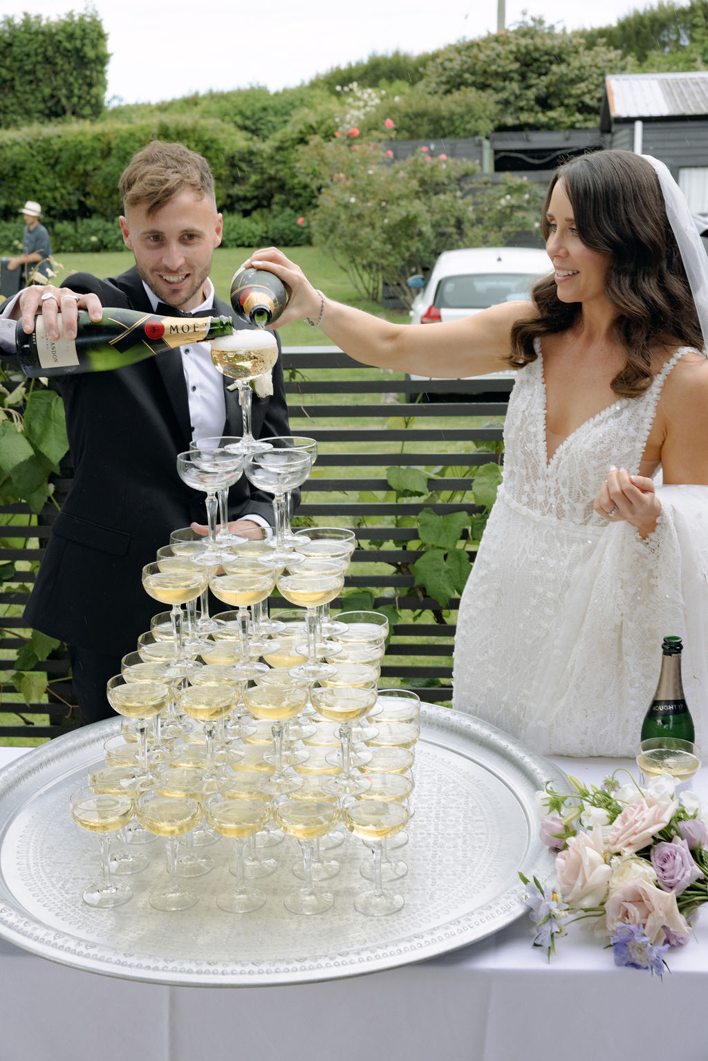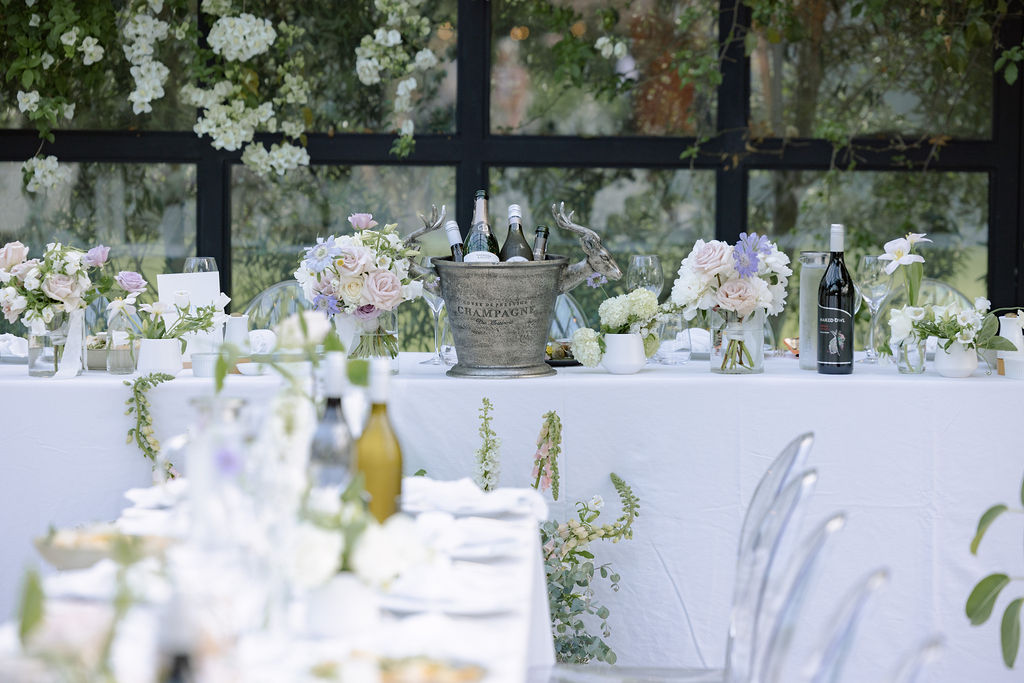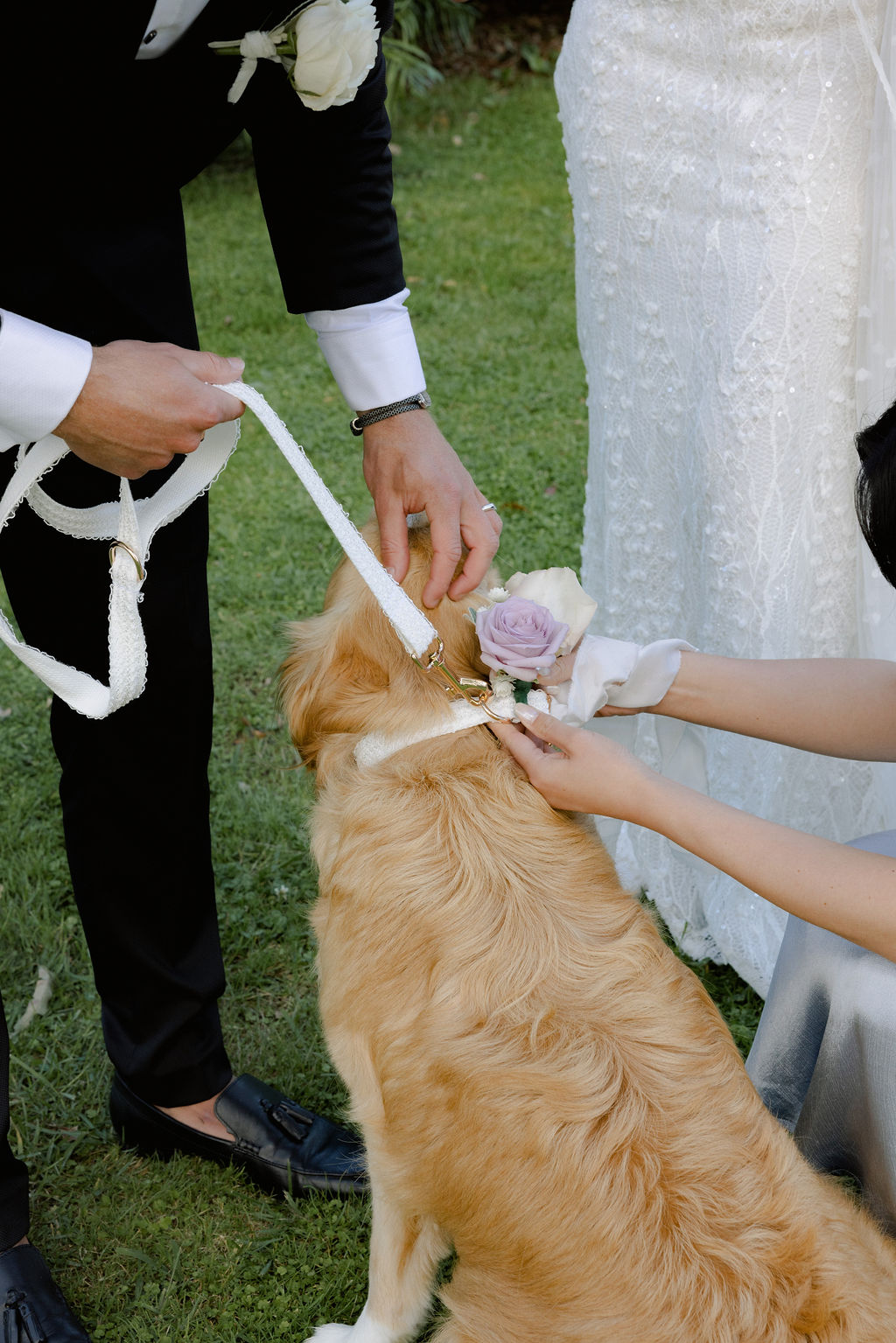 Black Walnut was the perfect setting for Caroline and Andrew’s Spring wedding, they had the best of the season’s snowball viburnum with whimsical foxglove, peonies and roses, masses of vases were scattered down the tables in the magical glasshouse and even their fur baby got to wear something special!