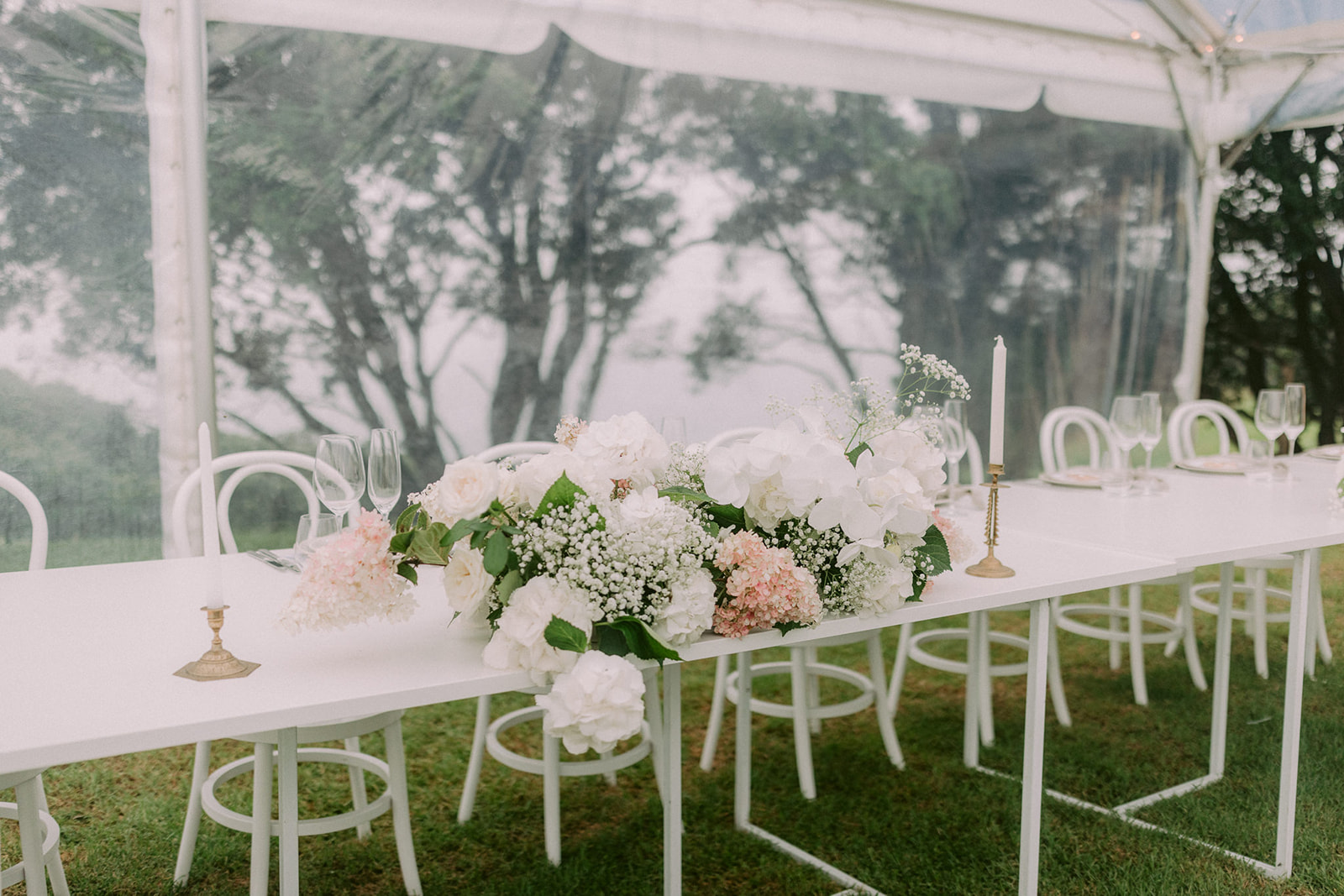 On a VERY moody day above the cliffs at Onemana, Louise and Nick were married at the VERY gorgeous Hillbrook Estate. Right from our first chat I knew this wedding was going to be a stunner. We created a pair of floral pillars that were filled with roses, hydrangeas and gypsophila, lush bouquets for ALL the girls and some yummy head table pieces. I was completely in love with the most beautiful paniculata hydrangeas… so hard to get but bloody amazing!