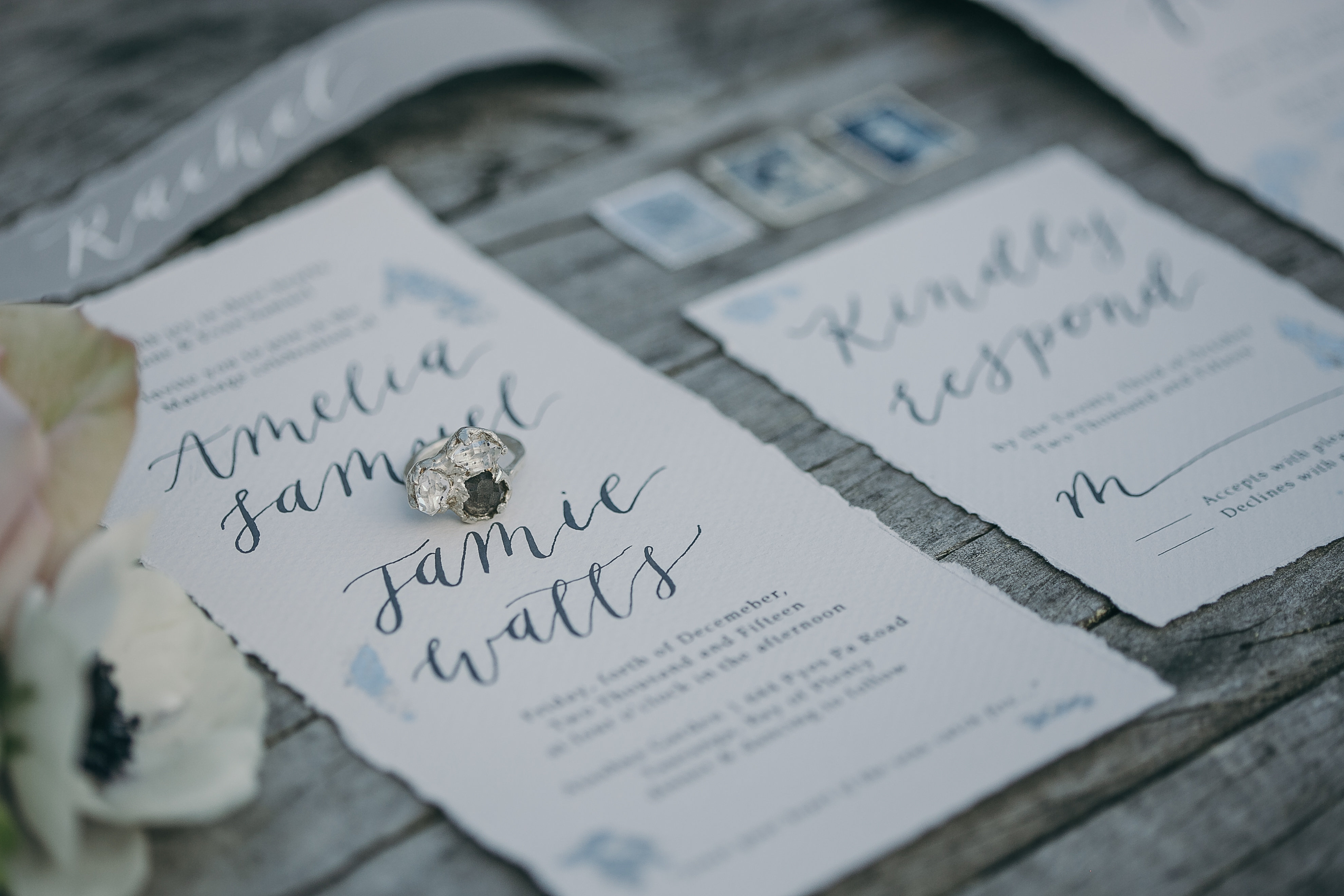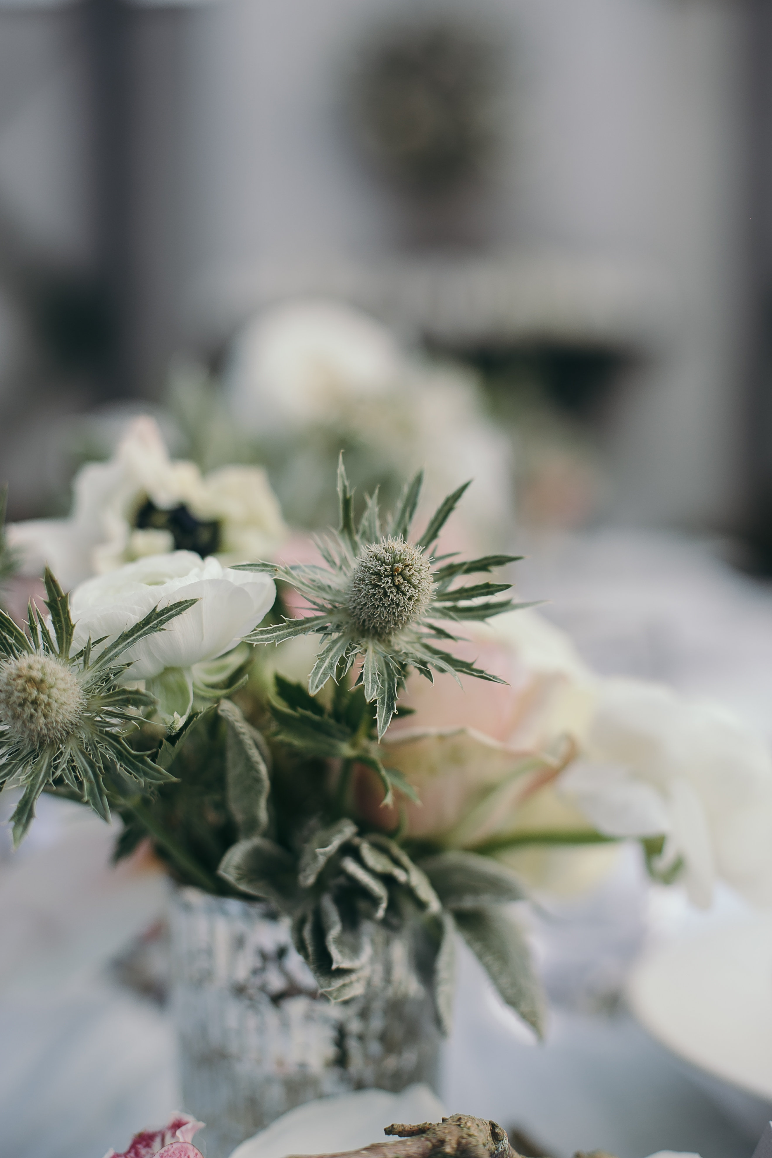 Romantic, ethereal, candles, magnolia, roses and love, soft, silvery leaves, calligraphy, hand-painted, a wreath of branches and trails of blooms.