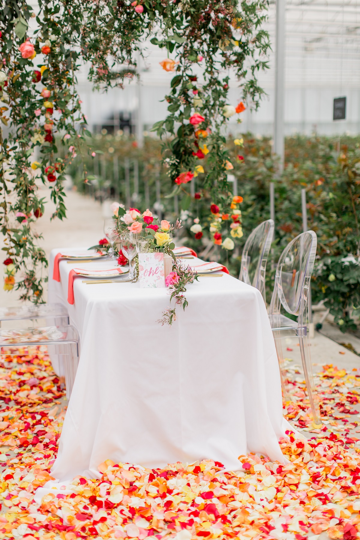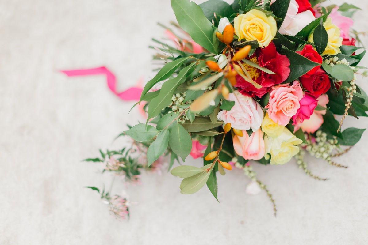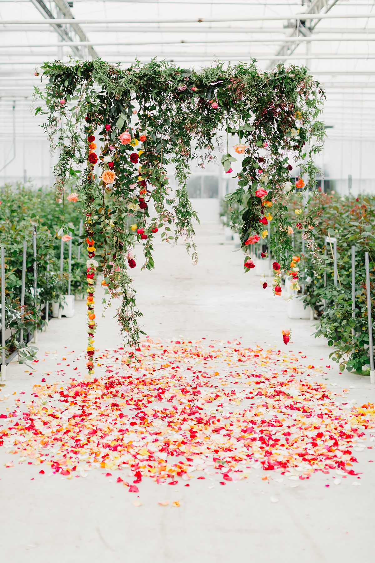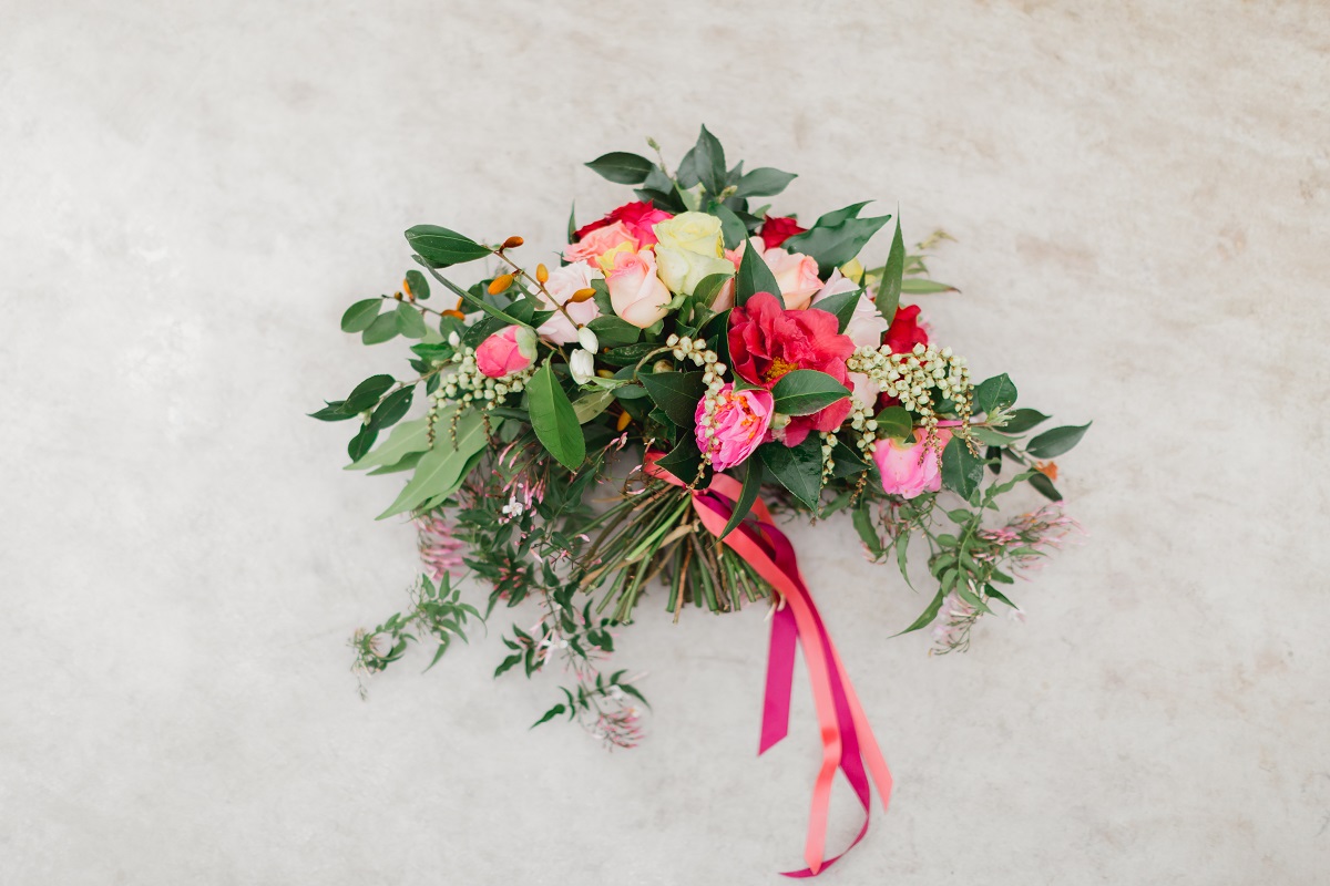 Rows of fresh blooms, trailing jasmine and suspended florals, hand-painted silk, watercolour, fun, vibrance and joy.