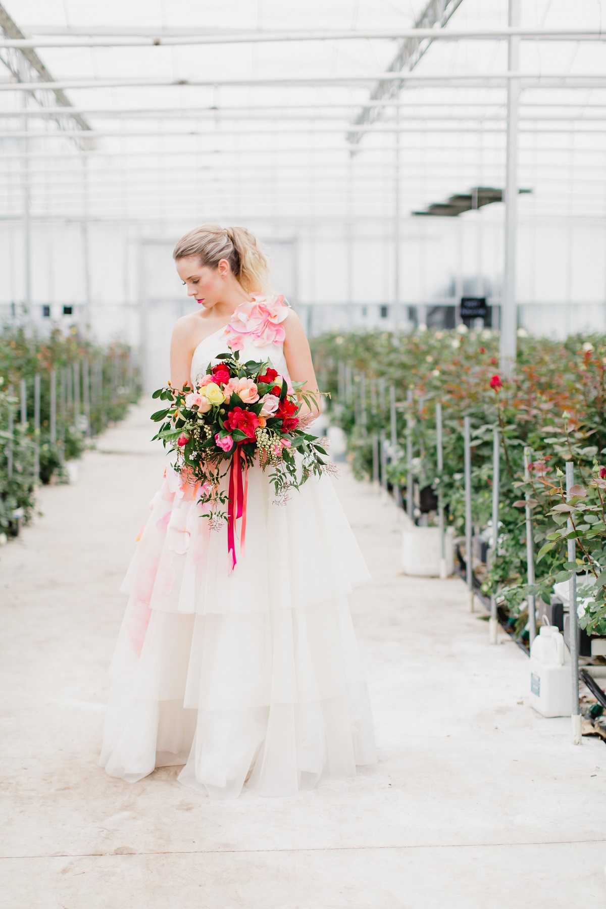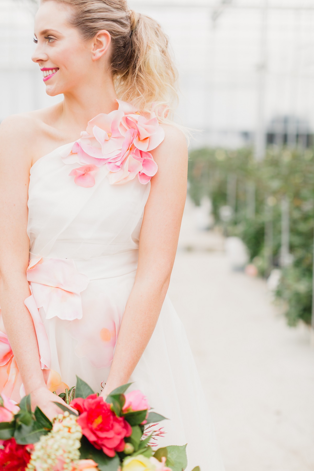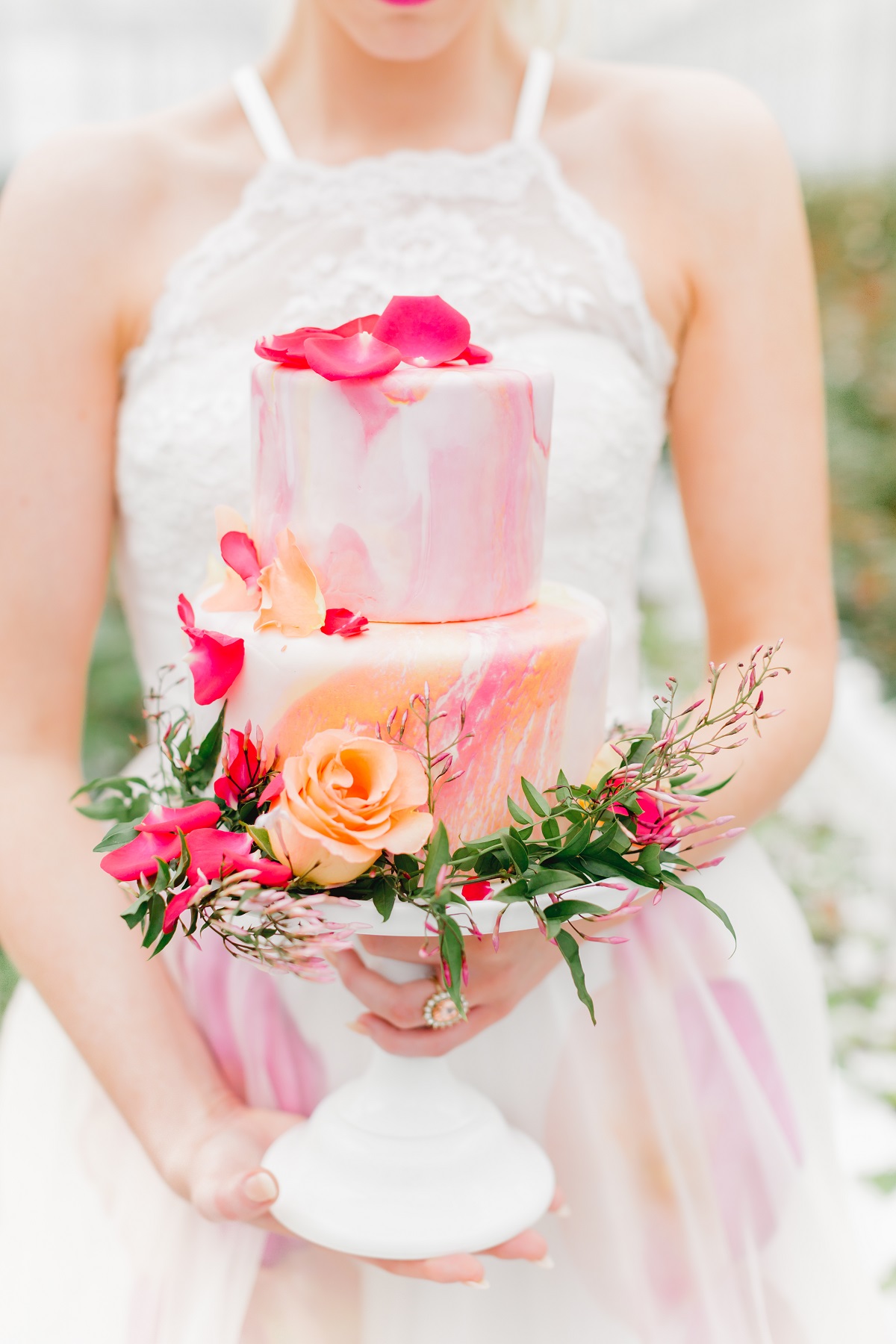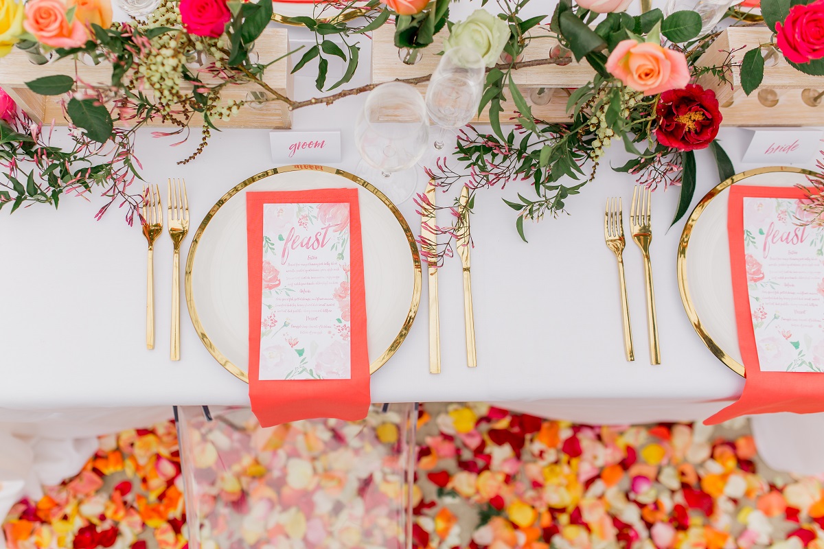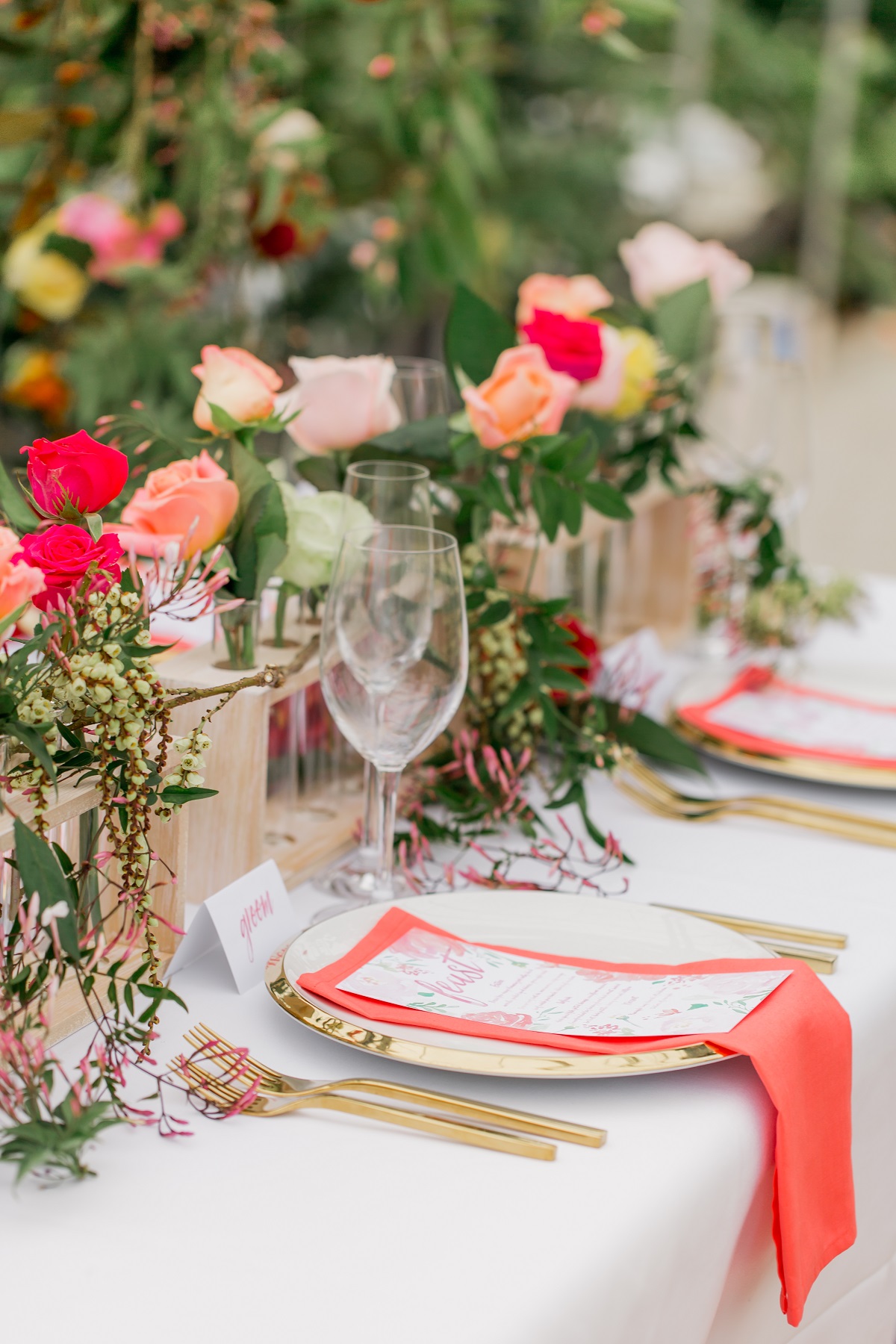 Rows of fresh blooms, trailing jasmine and suspended florals, hand-painted silk, watercolour, fun, vibrance and joy.
