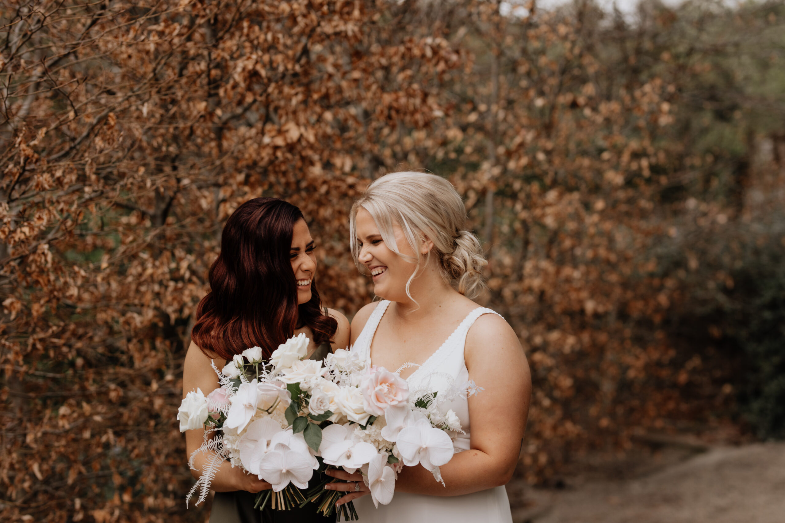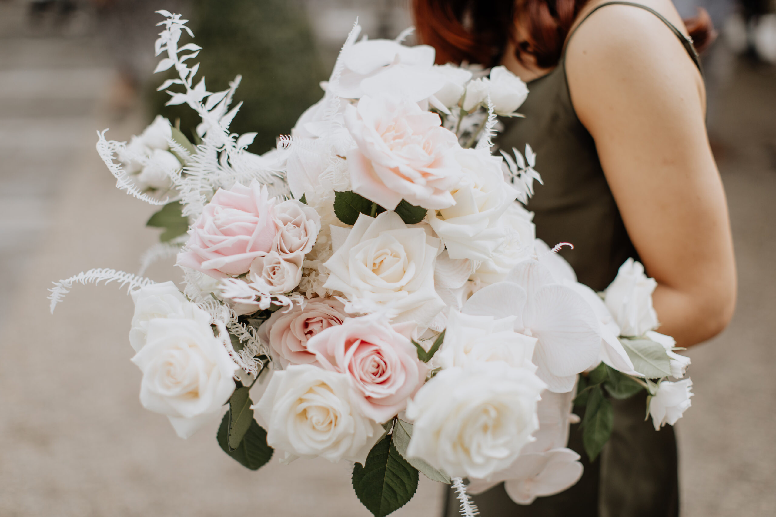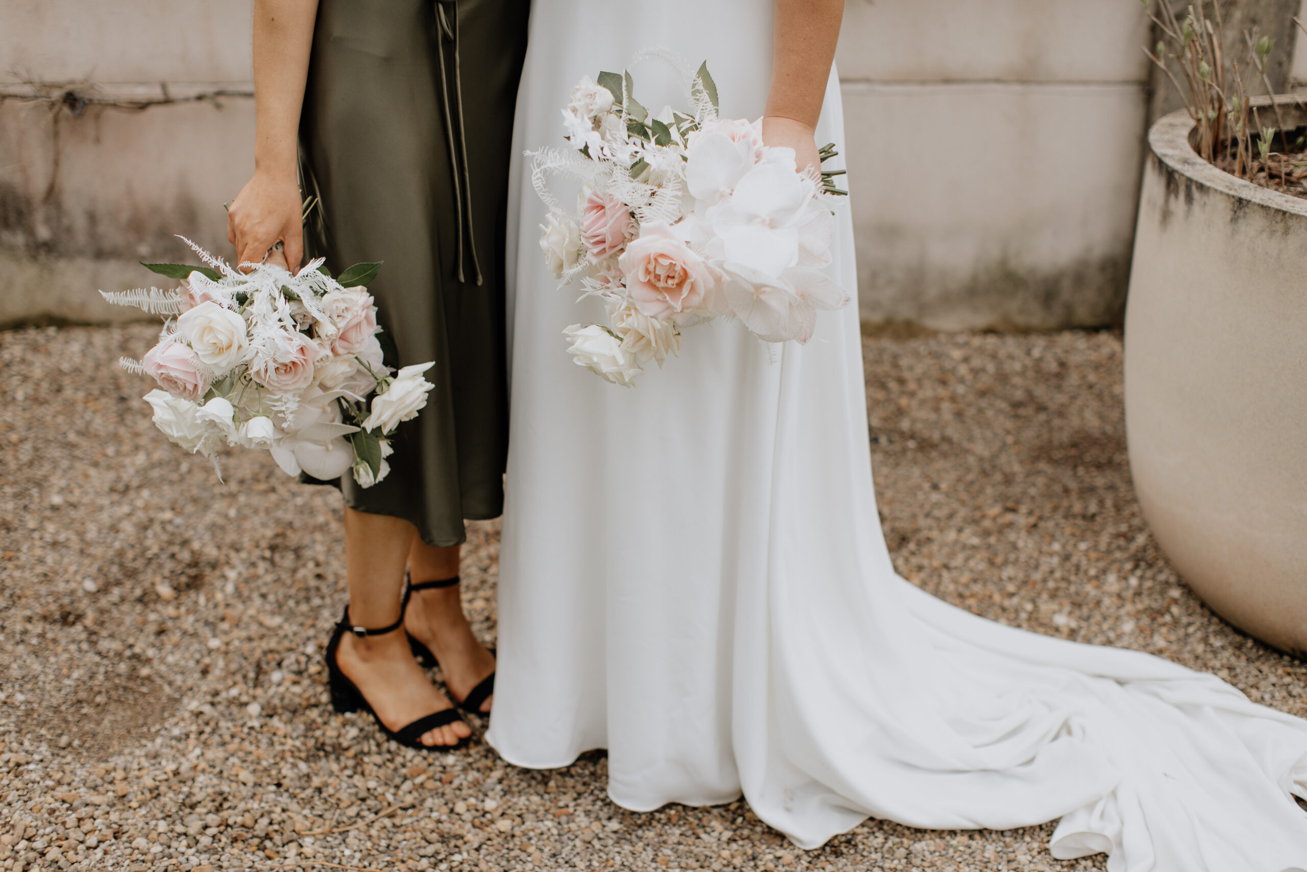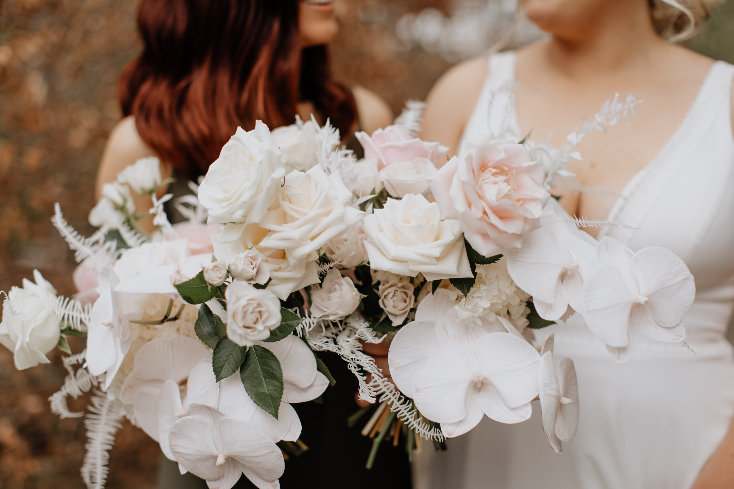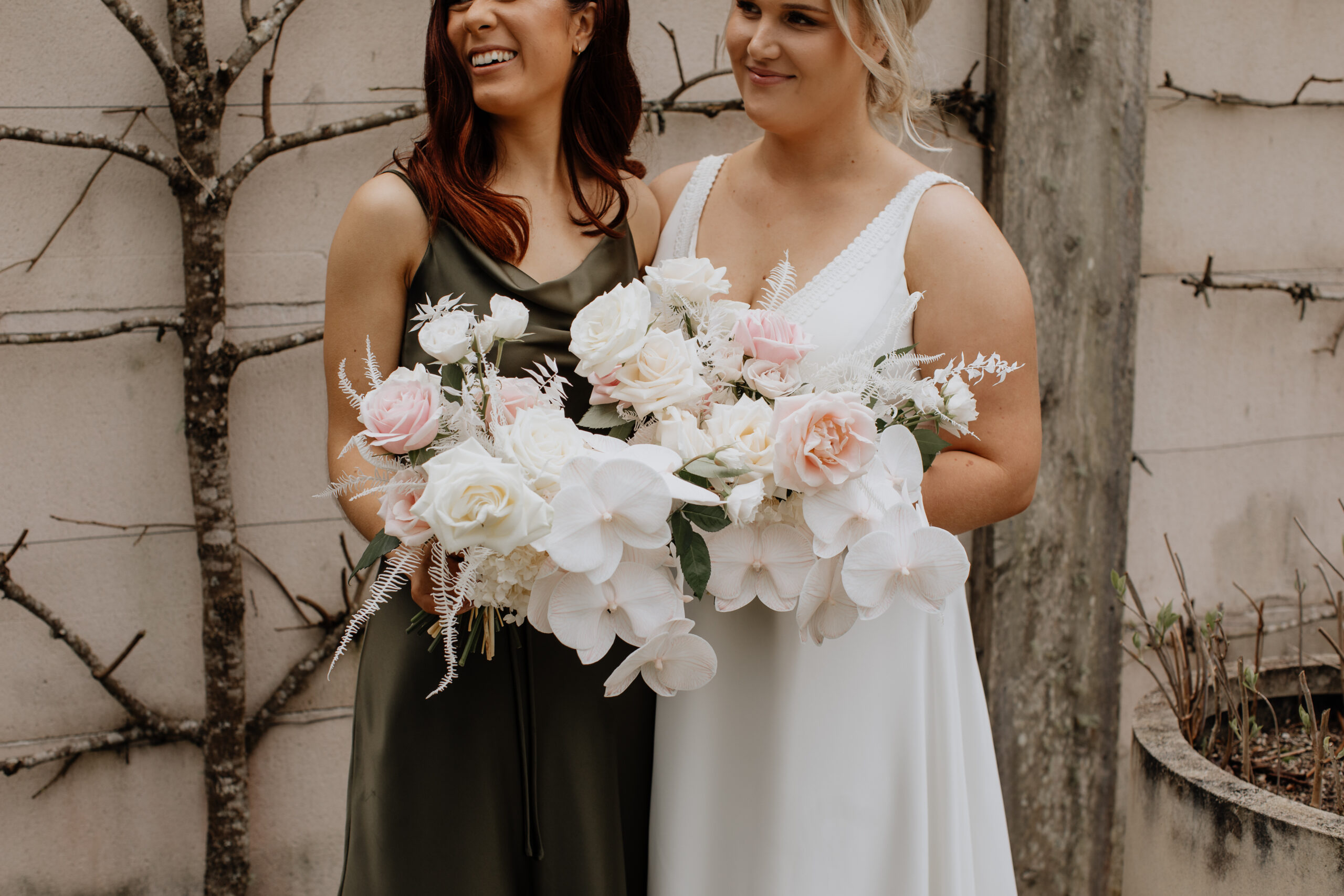 Could there be a more delicate palette than this gorgeous combination of porcelain pinks and white. Accents of preserved foliage, tinted phalaenopsis and a touch of greenery. The perfect tones for these early spring nuptials at Ataahua Garden Venue. Captured so beautifully by Erica Jane.