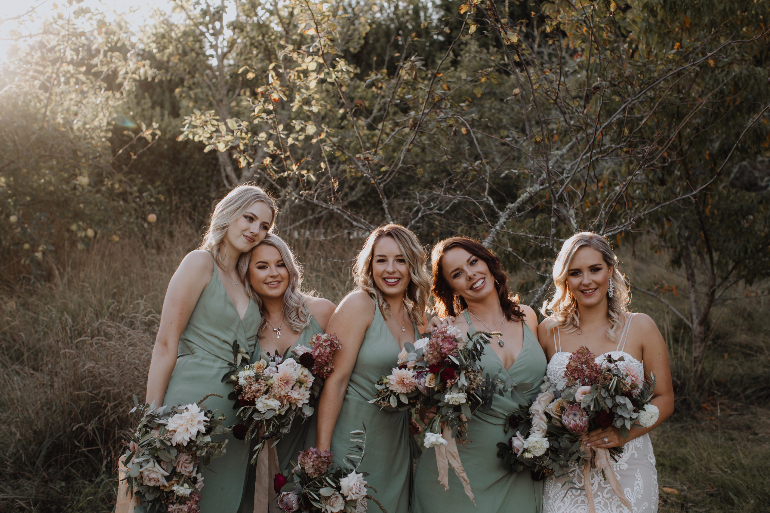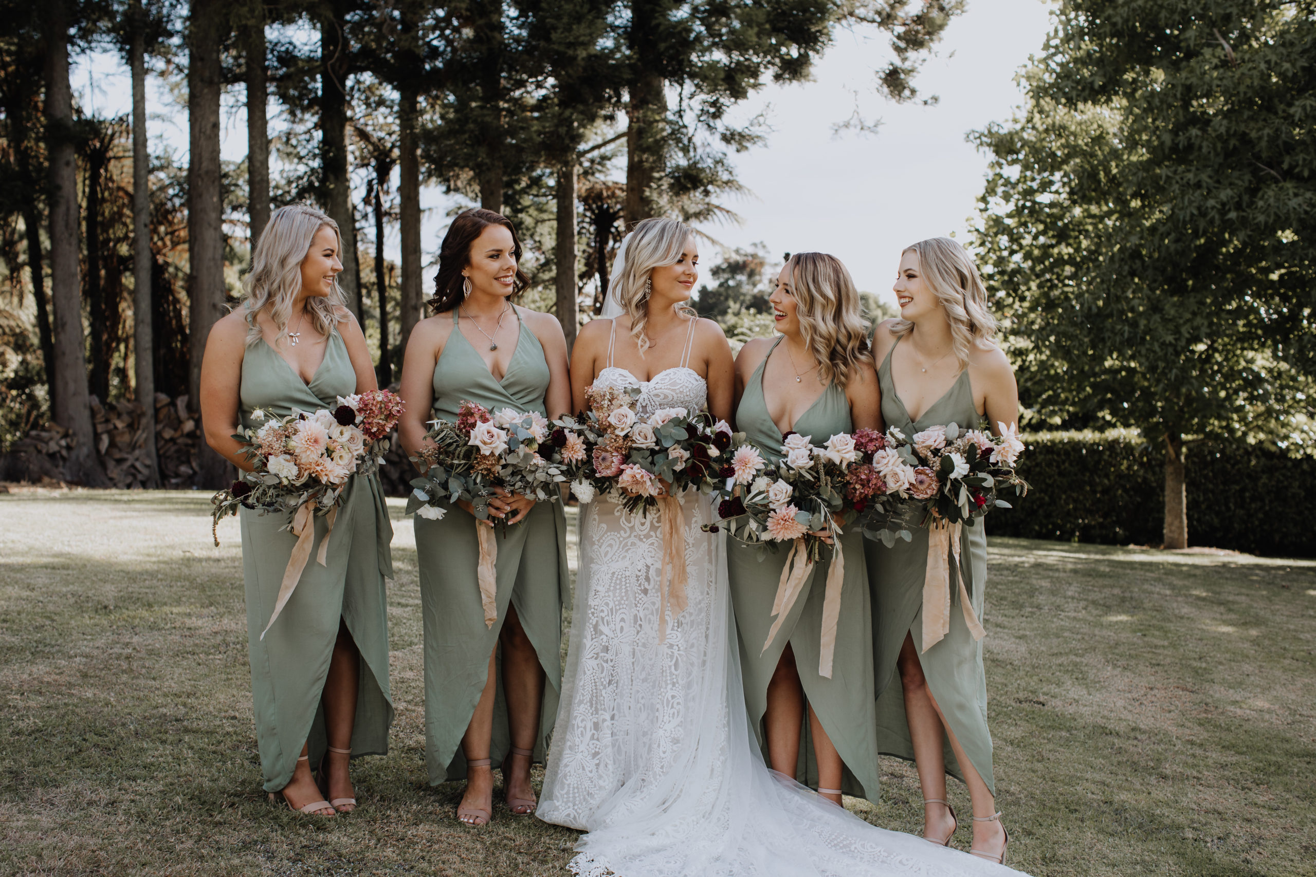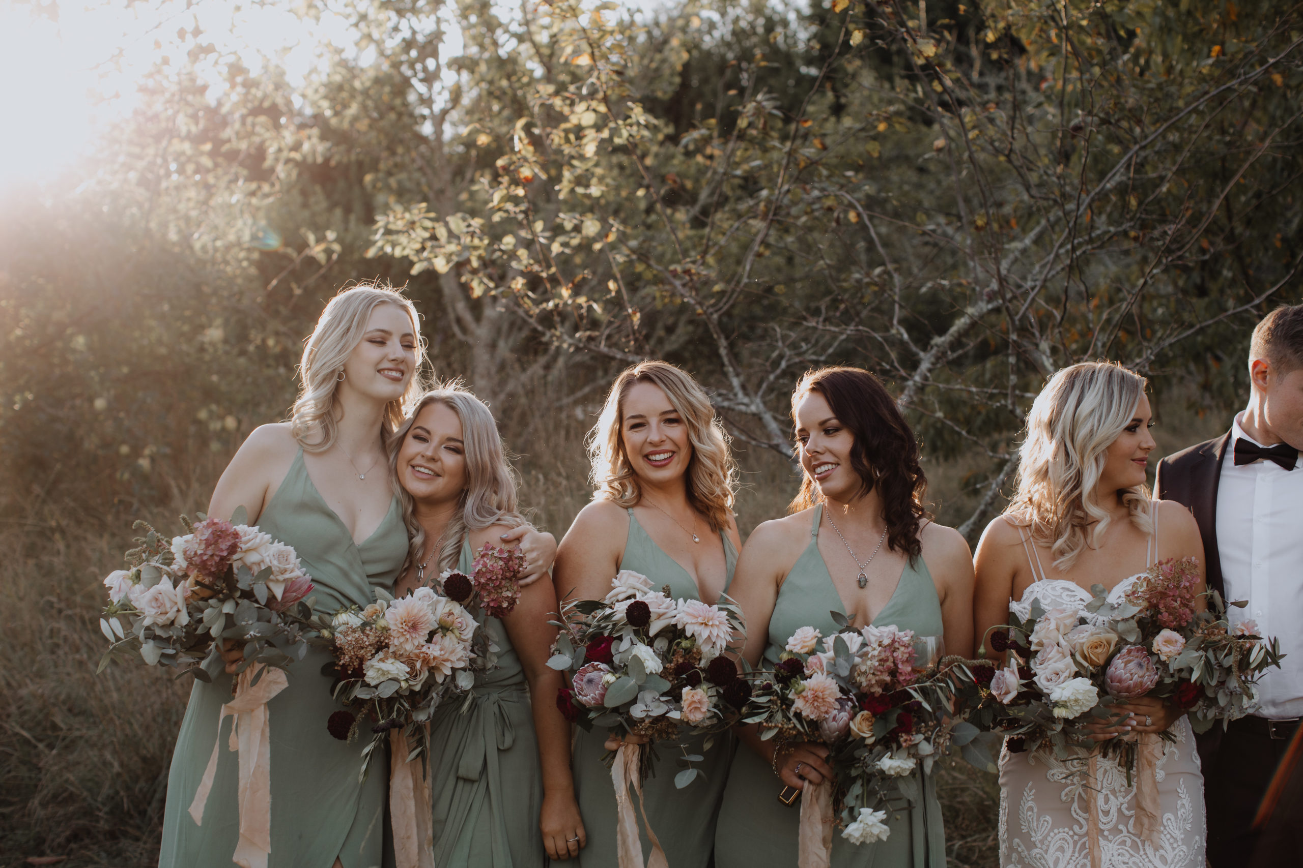 Wanting a muted mix of seasonal tones Shelby choose blooms in faded pinks, soft greens and latte. I chose to use paniculata hydrangeas with a touch of Autumn colour, blush roses, soft proteas foraged trailing goodness and lush muted greenery.