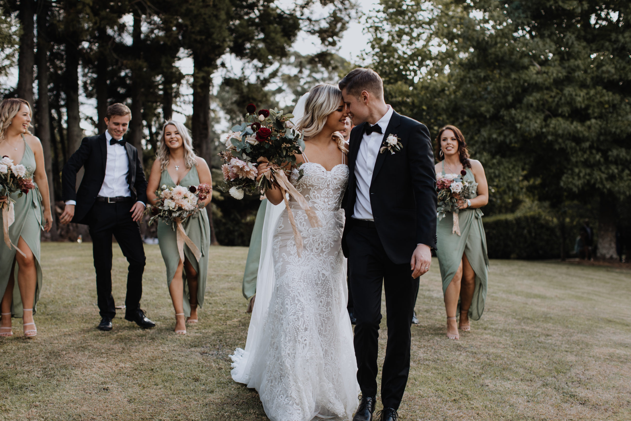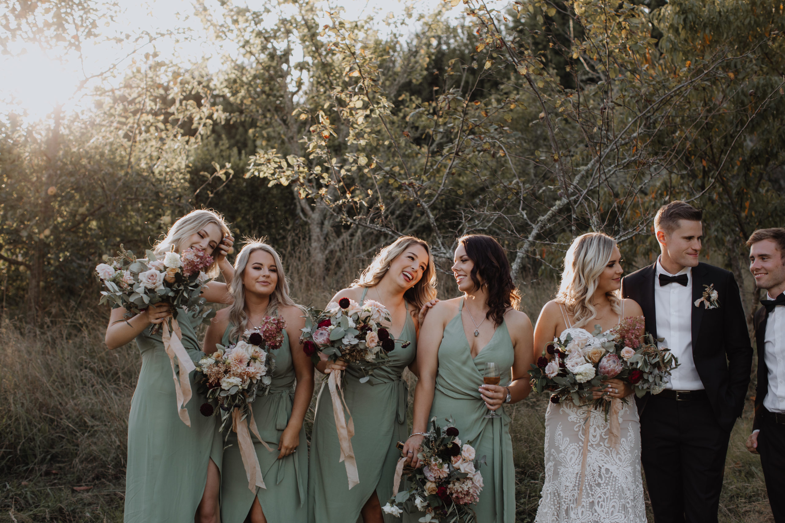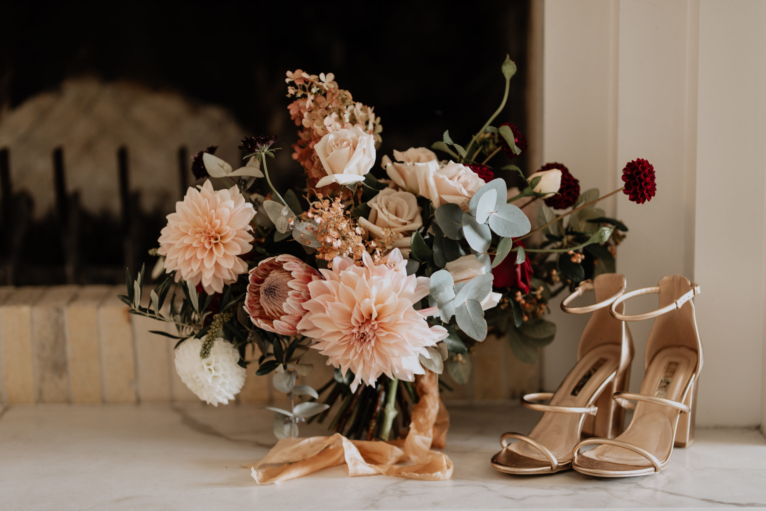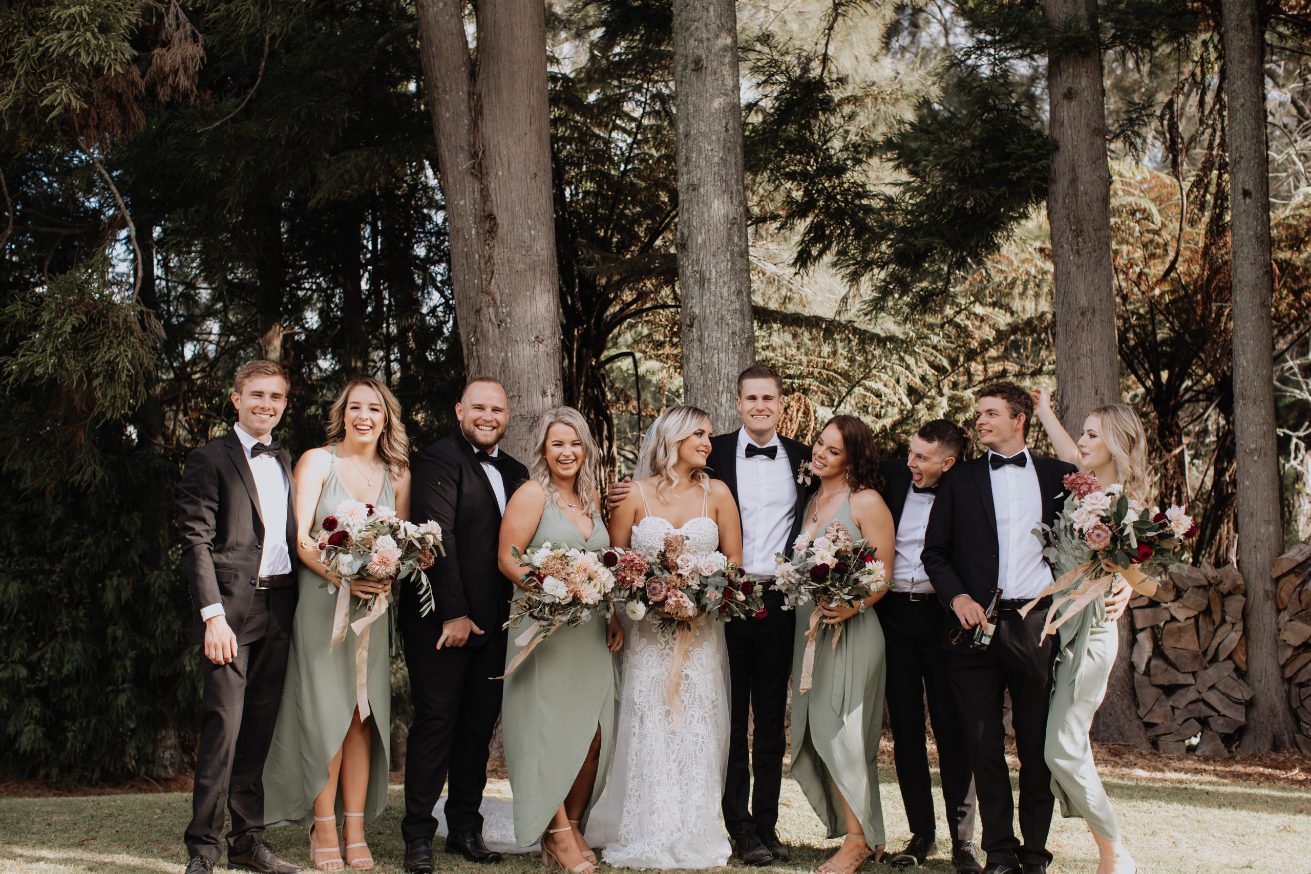 Wanting a muted mix of seasonal tones Shelby choose blooms in faded pinks, soft greens and latte. I chose to use paniculata hydrangeas with a touch of Autumn colour, blush roses, soft proteas foraged trailing goodness and lush muted greenery.